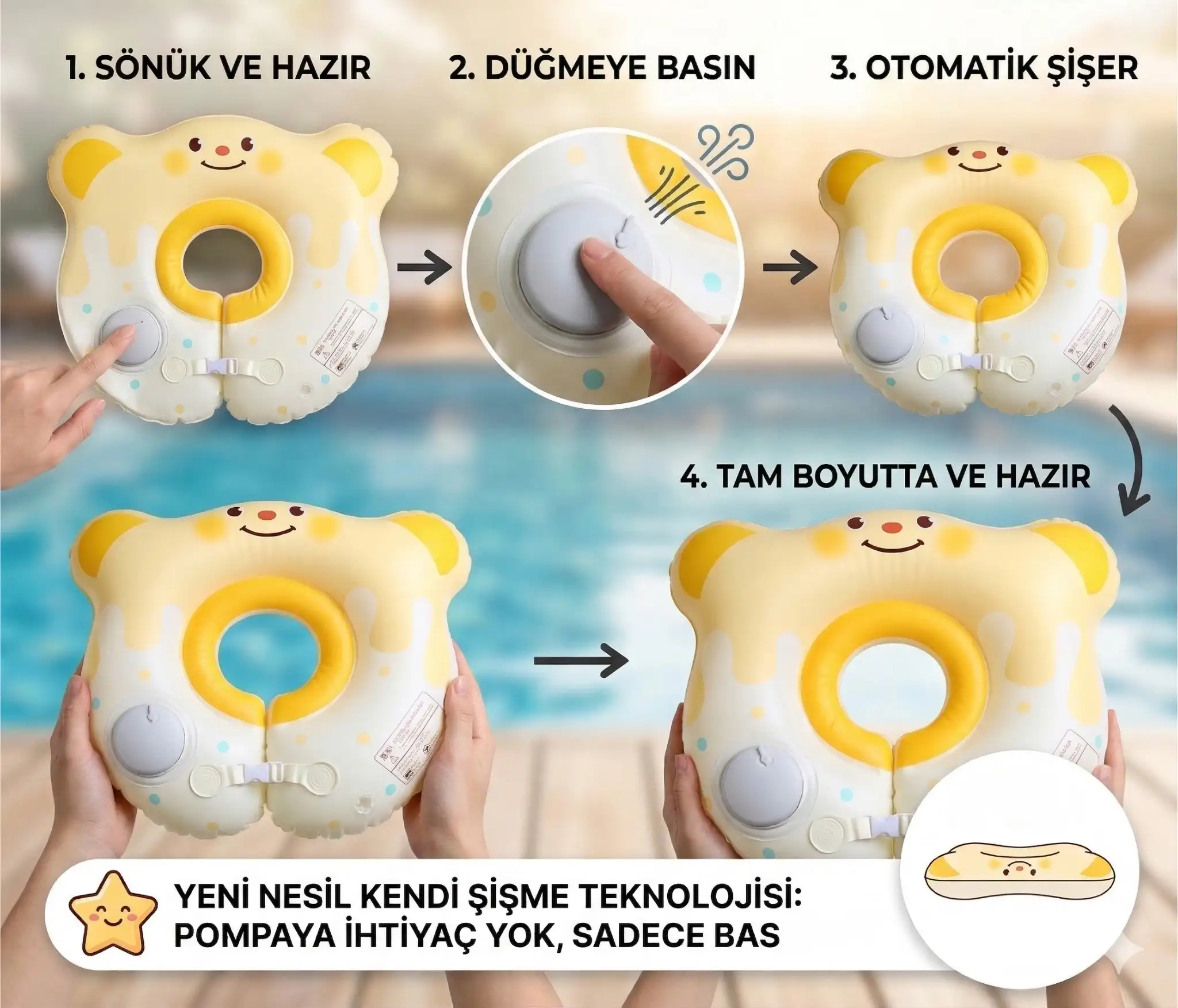 5️⃣ HAZIR! Saniyeler içinde hazır! Artık bebeğiniz güvenle yüzmenin tadını çıkarabilir.