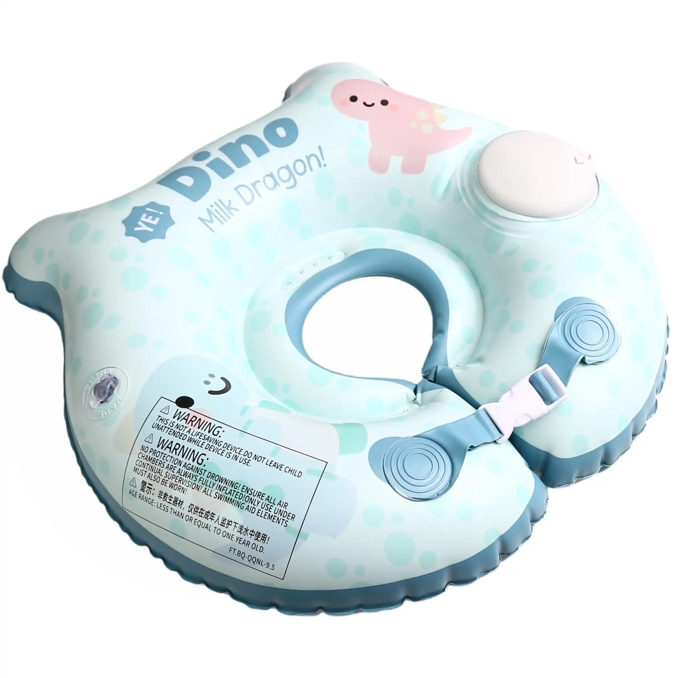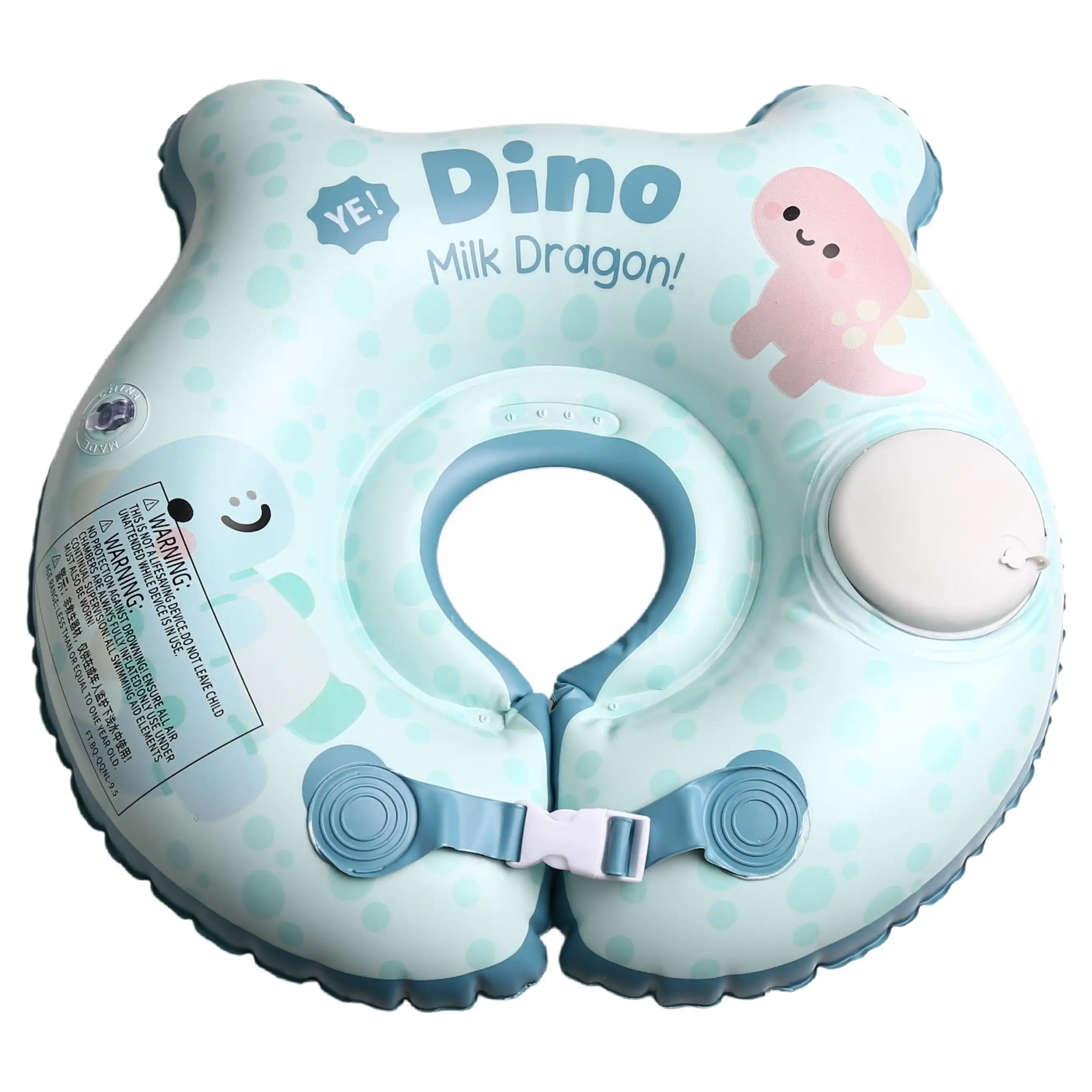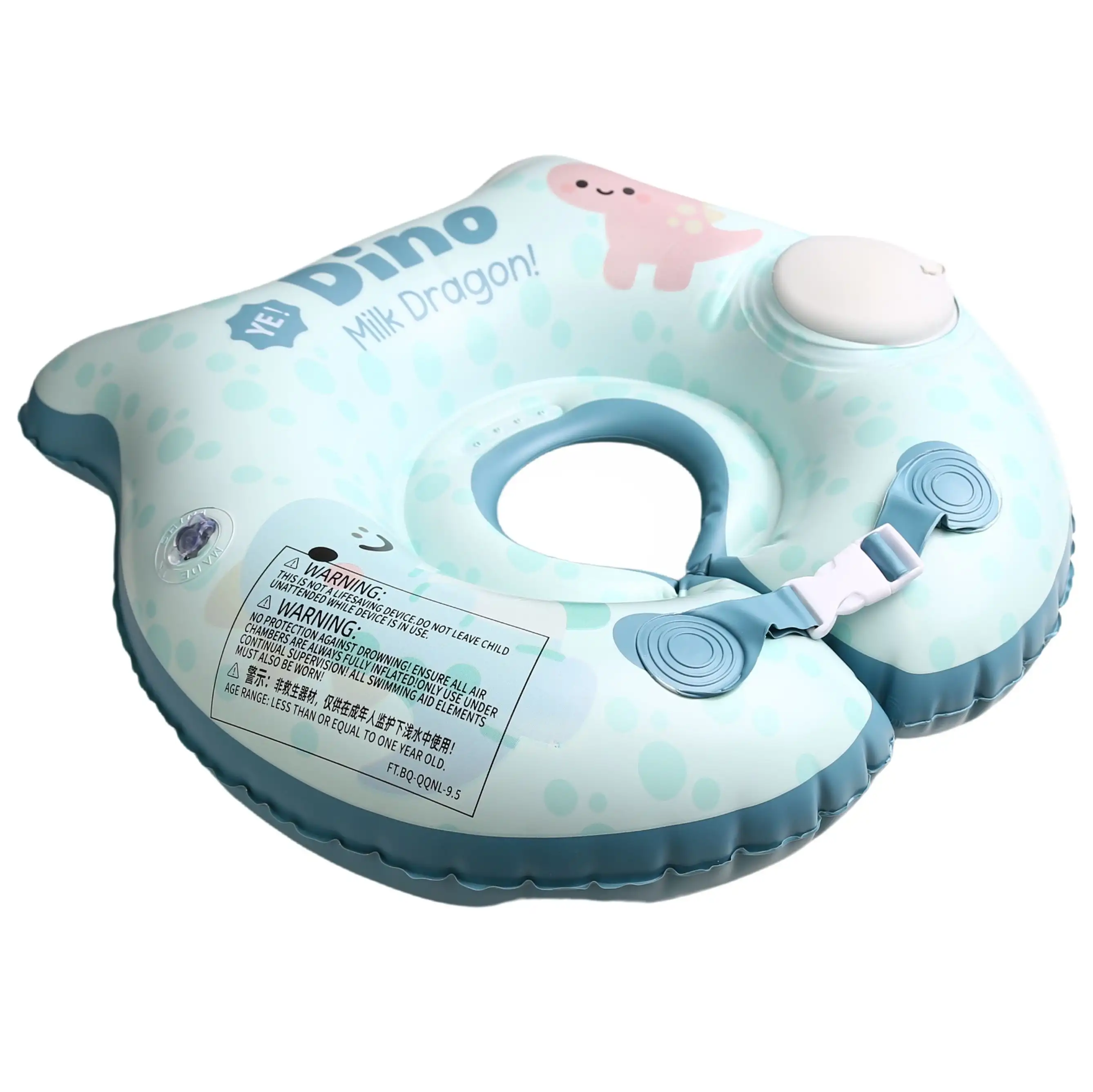 Bebek Yüzme Simidi Bas Şişir Pratik 0-1 Yaş Çift Emniyet Kilitli Mavi Dino Simit