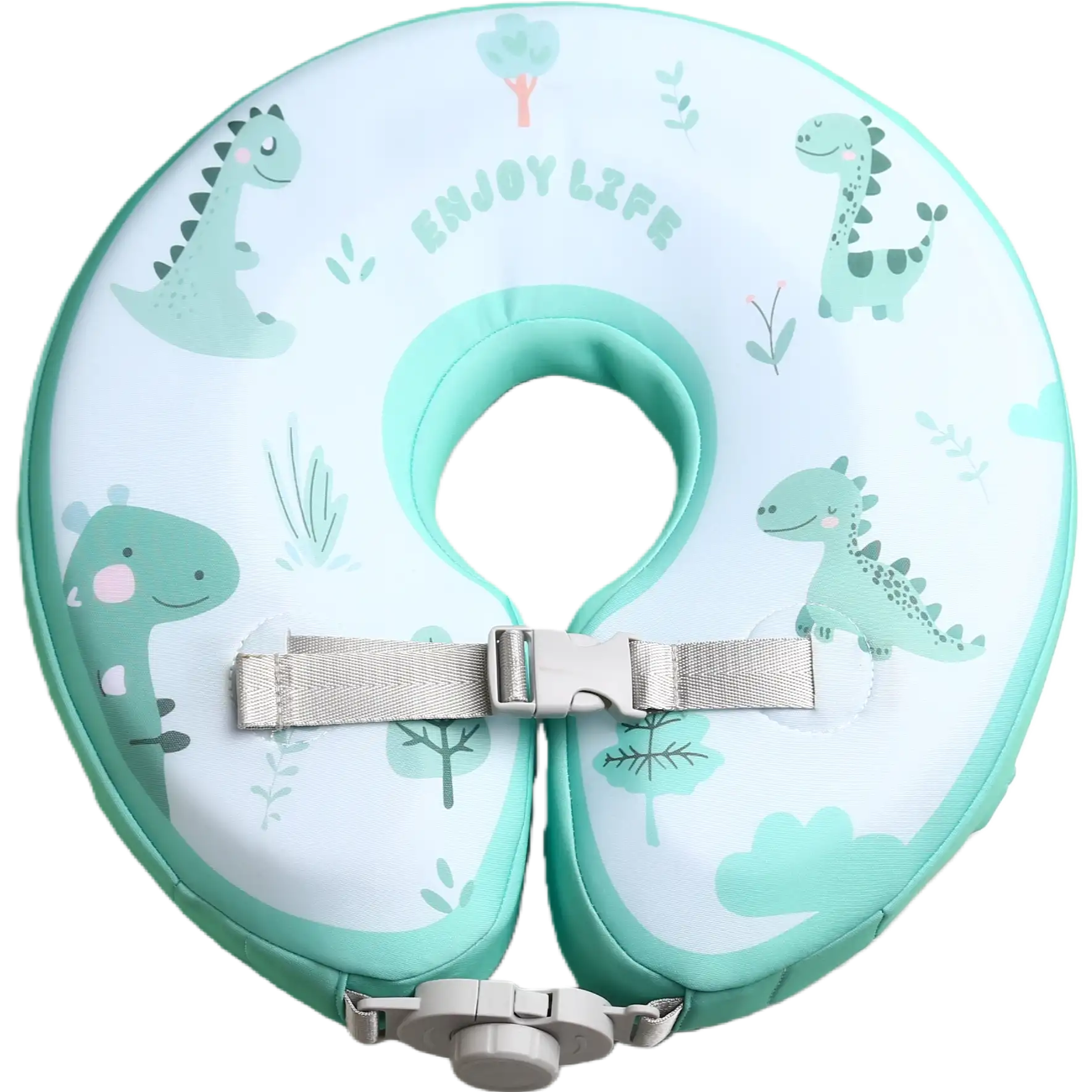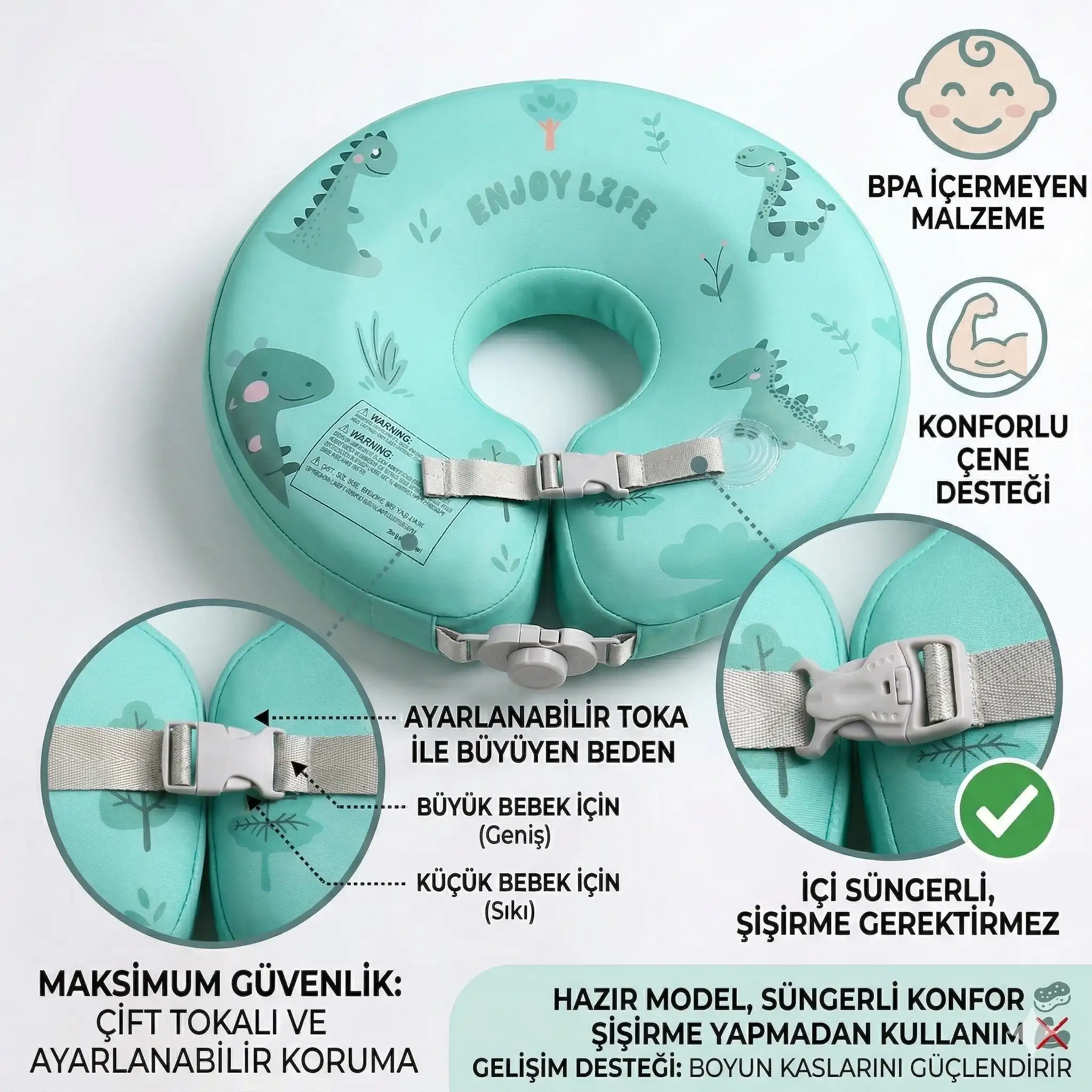 Bebek Boyun Simidi Dinozorlu - Kilitli Güvenli Bebek Yüzme Simidi - Nane Yeşili (0-12 Ay)