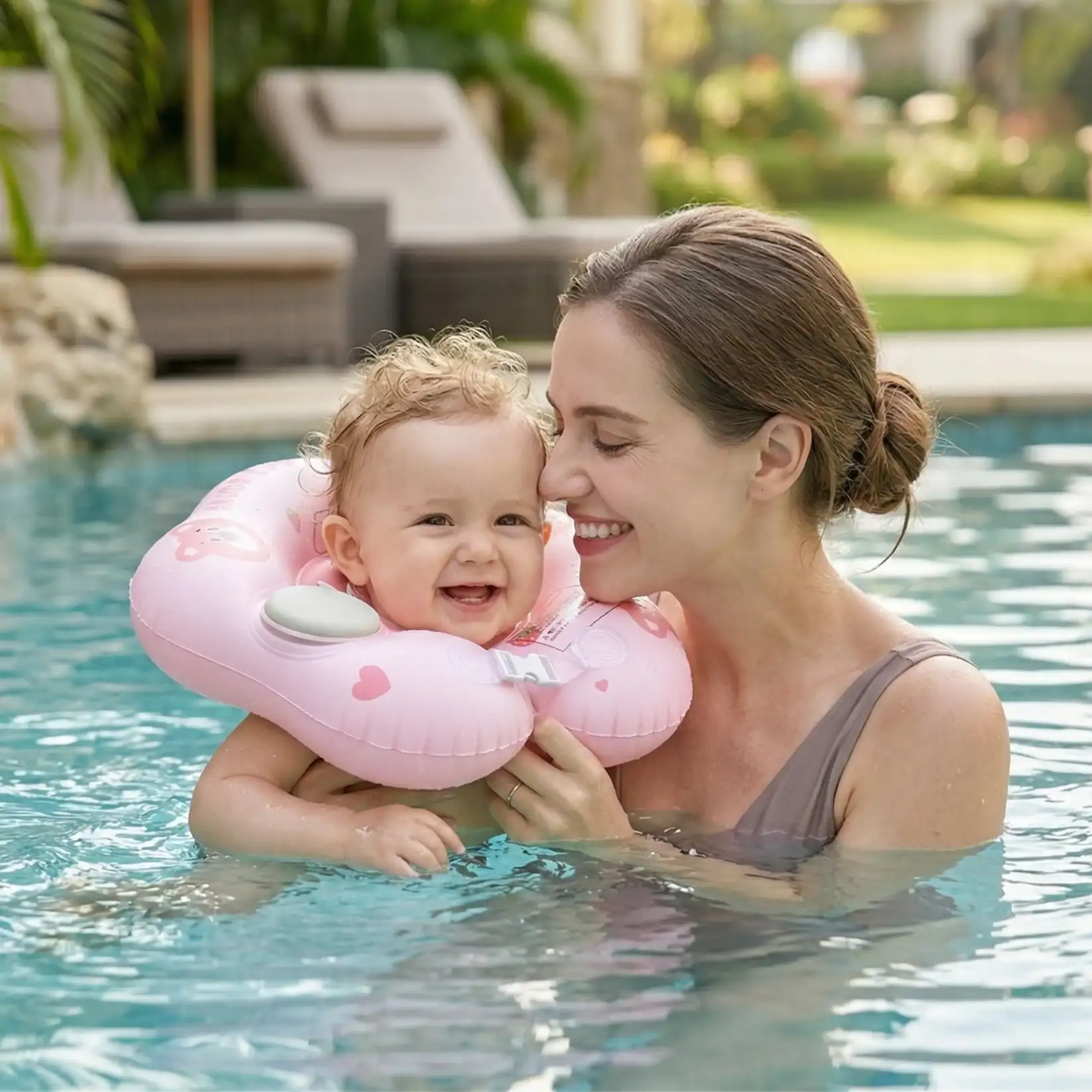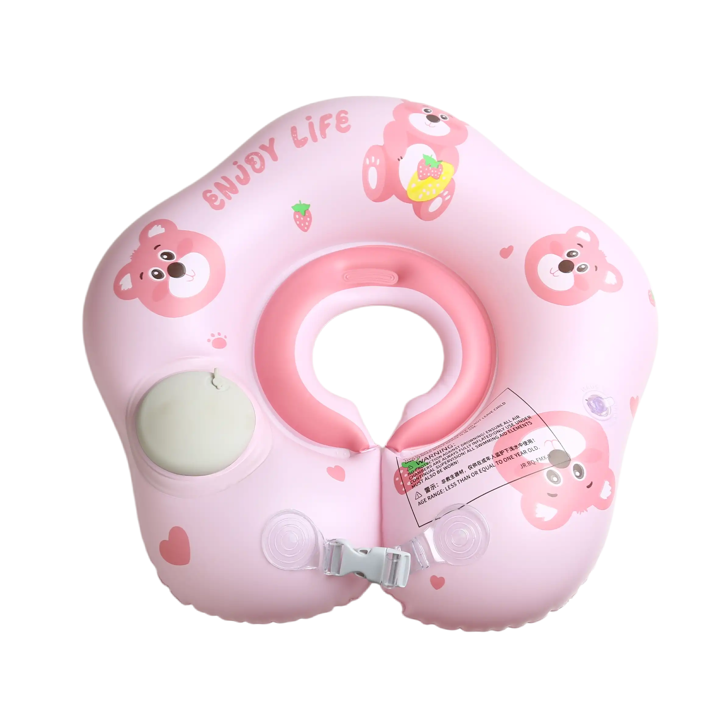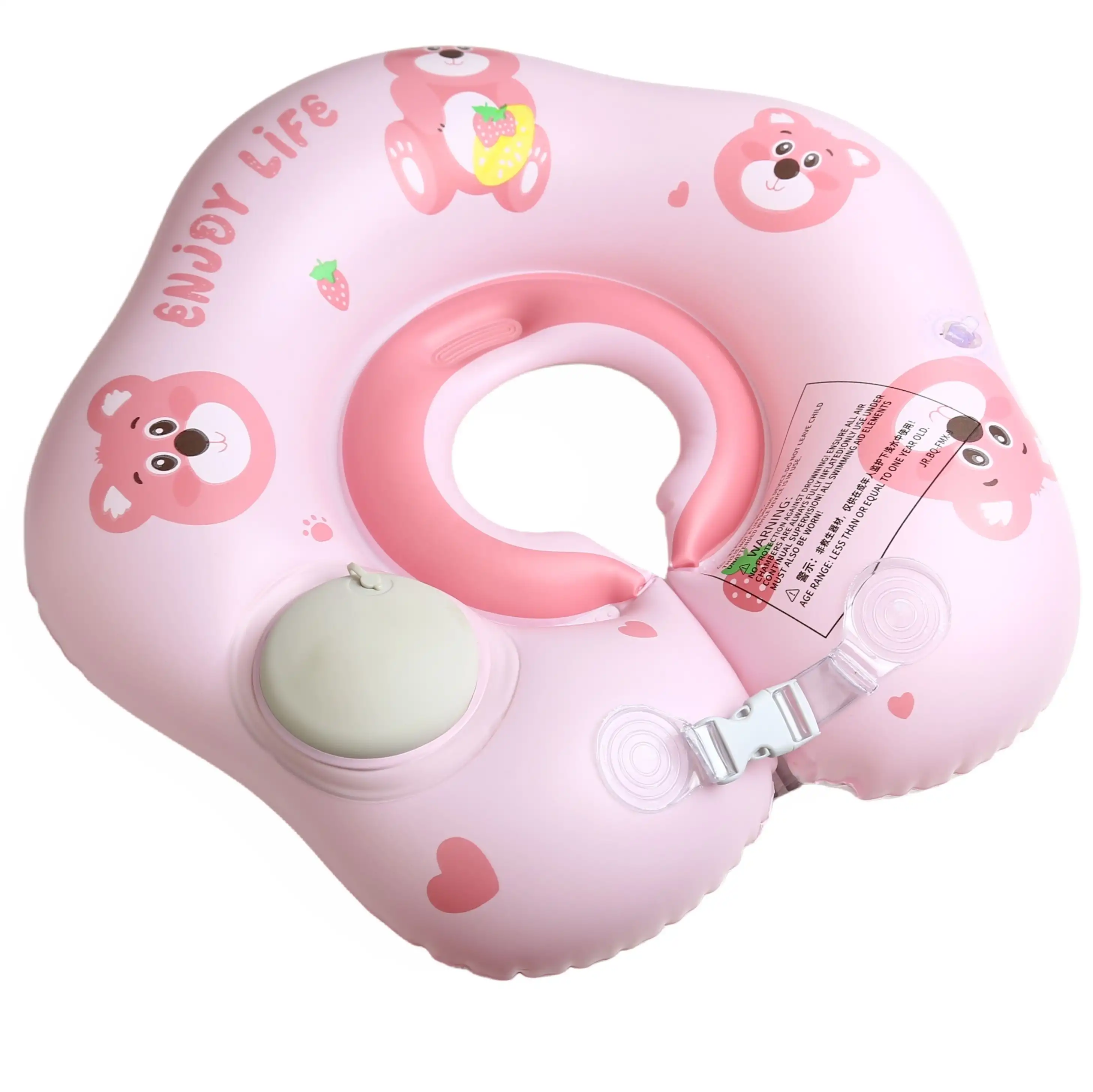Bebeğinizin suyla tanıştığı o ilk anlar hem unutulmaz hem de çok güvenli olmalı. Sevimli pembe ayı figürleri (çilekli olanı da var!) ve ergonomik tasarımıyla öne çıkan Pembe Ayı Bebek Boyun Yüzme Simidi, küçüklerin suyun tadını özgürce çıkarmasını sağlar. "ENJOY LIFE" (Hayatın Tadını Çıkar) mottosuyla üretilen bu simit, güvenlikten ödün vermez.